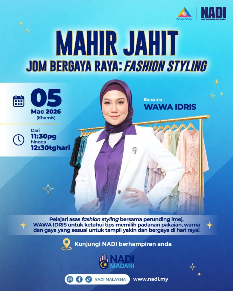 Jom dapatkan tips fashion styling percuma bersama https://www.instagram.com/wawaidrisofficial/ secara dalam talian eksklusif di NADI.